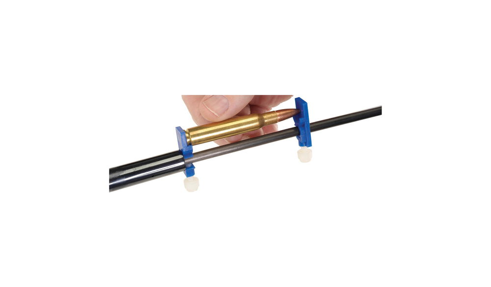 If you have a cleaning rod and a set of calipers, you can now determine the optimum OAL for any bullet in less than two minutes. This simple kit consists of two clamps that easily attach to any cleaning rod, ¼” in diameter or less. Simply insert a cleaning rod into the bolt face and install one clamp at the end of the bolt face. Then remove the cleaning rod and insert a round into the chamber. Next, touch the cleaning rod end to the back of the round and attach the second clamp at the end of the bolt face. Finally, remove and measure the distance between the two clamps or use as a gauge to check the seating depth set-up during your reloading sequence. It works on all rifles.